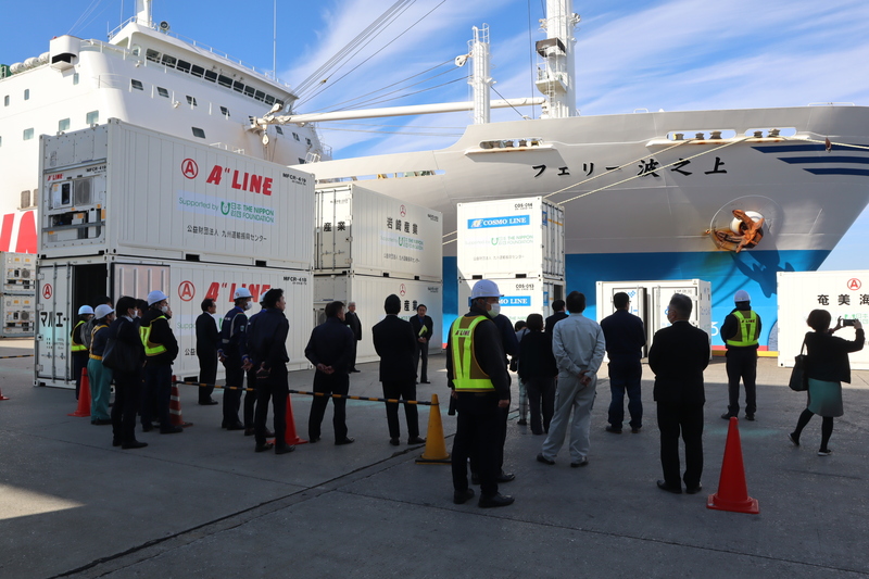 令和7年12月10日、鹿児島新港 旅客ターミナル3階(鹿児島市)において、日本財団の助成を受け製作した冷凍コンテナ(計10個)の引渡し式を開催しました。