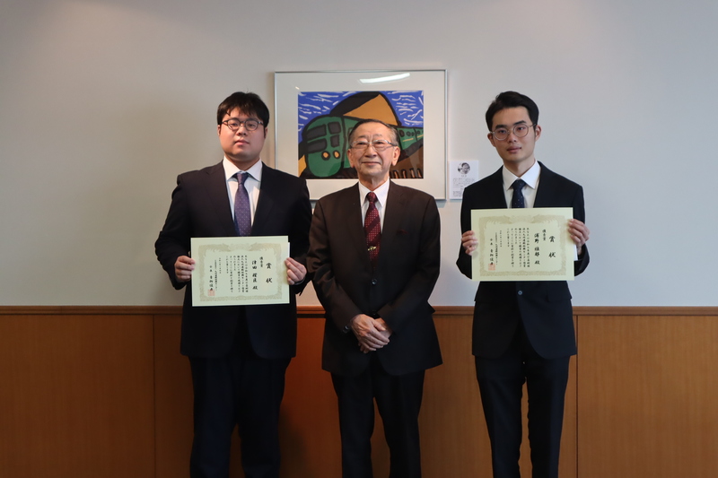 なお、受賞者に対して、令和8年2月4日(水)、当センター青柳俊彦会長より表彰状と副賞(優秀賞各5 万円)が授与され、優秀賞に選ばれた論文を執筆した学生2名と、ご指導された教官が出席されました。
